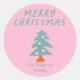 Comme vous le voyez, le design présente un arbre de Noël abstrait peint à la main unique, bleu et rose. Avec la typographie crème et bleue manuscrite de joyeux Noël et nom manuscrit en bleu. Tout sur arrière - plan rose.