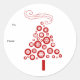 Un design fantaisiste avec un sapin de Noël rouge et blanc avec des flocons de neige.