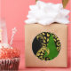 Élégant et moderne, cet autocollant est parfait pour mettre la touche finale sur ces paquets emballés. Cet arbre de Noël vert avec un arrière - plan noir et des feuilles d'or faux tourbillonnantes est assorti à l'enveloppement cadeau et à la décoration de vacances dans cette collection exclusive au SalonOfArt.com.