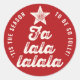 Arbre de caractère gras Falalalala rouge et blanc crème ivoire avec étoile, autocollant de faveur de fête moderne de vacances / sceau d'enveloppe.