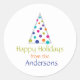 Ce design moderne et chic d'arbre de Noël présente un triangle argenté avec des boules de Noël aux couleurs vives suspendues à l'arbre. Les couleurs des ampoules comprennent le vert citron, l'orange, le rose, le violet, le cyan et le bleu. Cet autocollant fonctionne comme un sceau d'enveloppe et une étiquette-cadeau. De couleurs vives, il est sûr de se démarquer de la foule de rouge et de vert. Donnez à vos vacances une touche moderne. Vaisselle de fête et décorations de vacances assorties disponibles dans ma boutique. Créez un paysage de vacances digne d'un magazine avec ce design fabuleux.