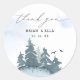 Sticker rond Mariage Merci Bleu Arbres Conifères.