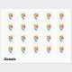 Une jolie glace rasée aux couleurs arc-en-ciel, une paille et une cuillère à bâtons dans un cône bleu et blanc rayé sur un autocollant blanc rond. Un grand autocollant pour les faveurs d'anniversaire ou de sceller les invitations!