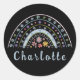 Sticker Rond Arc-en-ciel floral Boho avec nom personnalisé