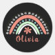 Sticker Rond Arc-en-ciel Floral Boho Avec Nom Personnalisé