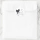 De chic autocollants noir et blanc pour vos invitations de douche de mariage, cartes de remerciement et faveurs de fête qui présentent un lavis élégant d'un nœud coquette délicat, "Elle noue le nœud" dans un script moderne, et le nom de la mariée et la date de la douche dans une lettre simple.