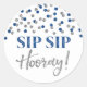 Sip Sip Hooray baby shower faveur étiquette autocollant avec bleu foncé et argent parties scintillant confetti motif. Parfait pour un baby shower pour décorer champagne ou bouteilles de vin.