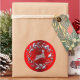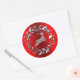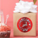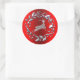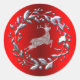 Un autocollant de Noël rouge très élégant avec un renne argenté brillant qui saute à travers un arrière - plan rouge métallique, dans une couronne de Noël argentée. Ce magnifique sticker rouge et argent ajoutera une touche élégante et luxueuse à vos décorations de Noël cette année.