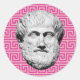 Aristotle sticker Greek philosopher sculpture face on a pink greek key pattern for anyone who loves Greece and Greek Philosophy, Ancient Greece and Classics