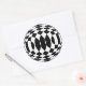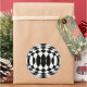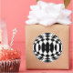 Soyez différent cette année ! Utilisez ces autocollants cool au lieu des arcs sur vos paquets cadeaux! Celui-ci applique un motif arlequin noir et blanc à une boule en 3d pour une fête Op-Art sauvage des années 60 !