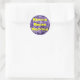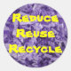 Faites la promotion de VOTRE message sur cet autocollant rond en utilisant le texte modèle sur l'arrière - plan de papier broyé violet subtil ou gardez ce message de l'environnement.