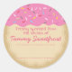 Le givre rose avec des arômes "fait maison par ou "de la cuisine de" autocollants de boulangerie ou de pâtisserie maison personnalisée avec votre nom et d'autres textes, parfait pour donner des douceurs de votre cuisine ou comme étiquettes de produits pour votre boulangerie maison.