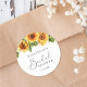 Autocollant de fête de mariage rustique avec un bouquet aquarelle de fleurs de tournesol et de verdure d'eucalyptus, une écriture calligraphique chic et une typographie serif élégante.