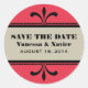 Elégant et sophistiqué Art déco fantaisie Save the Date Stickers en beige de mousse rouge coquelicot et marée avec une bordure art déco fleurie et pointillée et un jeu de couleurs à deux tons. Ce design moderne est parfait pour annoncer une décoration sur le thème de la mariage. Facile à customiser, il suffit d'ajouter les détails de votre mariage dans les champs de texte fournis. Cliquez sur "Customiser" pour trouver d'autres options de personnalisation.
