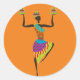 Une femme tribale africaine habillée de couleurs ethniques tenant des cruches d'eau. Ce design tribal est coloré et lumineux.