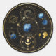 Beaux symboles astrologiques et célestes bleus et dorés dans le cercle doré et placé sur une image de velours noir avec des flocons d'or.