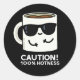 Sticker Rond Attention 100% Hotness Funny Coffee Pun Dark BG