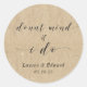 Un beigne mariage sur mesure favorise les autocollants/étiquettes avec la calligraphie moderne "Donut Mind If I Do" sur arrière - plan de texture papier kraft. Personnalisez avec les noms des mariés et des mariés et la date du mariage. Parfait pour décorer des sacs et des boîtes à beignes mariages.