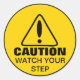 Attention Signe Regardez Votre Sticker À Pas. Autocollants ronds jaunes personnalisables avec des textes entièrement personnalisables "Attention" et "Watch Your Step" et triangle avec avertissement de point d'exclamation. Cette montre vos pas avertissement autocollant est entièrement personnalisable, ajoutez votre texte et vos images!