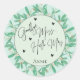 Au revoir mignon Mlle Bonjour Mme Greenery Fête des mariées Sticker rond classique. Le design a une citation GOODBYE MISS HELLO MRS. écrite en joli texte avec le nom de la mariée. Parfait pour une fête de douche nuptiale. Ce mignon autocollant peut être facilement customisé en changeant le nom de la mariée. Pour toute personnalisation supplémentaire, n'hésitez pas à me contacter à l'adresse mypaperlove2021@gmail.com