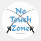 Le design No Touch Zone est doté de deux épées d'epee croisées, et fait un cadeau amusant et unique pour les enclos. Disponible également dans la conception de clôtures roses assorties pour les femmes - voir boutique pour plus de détails.