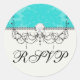 Sticker Rond audacieux motif bleu damassé aquamarine