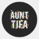 Sticker Rond Aunt Tifa - Retro Wildflowers Floral Feminist Mom