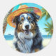 Sticker Rond Australian Shepherd On Beach amoureux des chiens c