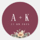 Sticker Rond Autocollants, Élégant monogramme bordeaux floral