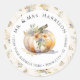 Aquarelle fleurs d'automne avec une citrouille blanche, feuilles d'automne et fleurs sauvages Étiquette d'adresse de retour, Autocollant rond classique. Élégante étiquette d'adresse de retour qui peut également servir de sceau pour enveloppe ajoutant une touche finale élégante à votre présentation d'invitation. Typographie de style écriture manuscrite avec le nom, l'adresse et le monogramme de l'expéditeur sur un cadre rond simple et moderne. Couleurs chaudes d'automne : orange brûlé, terre cuite, marron, vert atténué et ivoire. msp0113