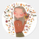 Sticker Rond Automne Fleurs d'automne et dessin Feuille