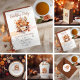 Découvrez l'élégance douillette de l'automne grâce à notre collection design "Fall Floral Cottage Core Teacup Birthday Tea Party". Cette charmante illustration présente une délicate tasse blanche ornée d'un motif en feuille gracieux, reposant gracieusement sur une soucoupe assortie. Autour de cette pièce centrale se trouve un bouquet d'automne plein de vitalité, bourré d'abricot et de teintes orangées brûlées qui captent l'essence de la saison. Fleurs riches, feuilles complexes et baies gaies créent une atmosphère chaleureuse et accueillante. La tasse et la soucoupe sont positionnées au-dessus d'un trait d'aquarelle semi-opaque qui imite la texture d'une table, ajoutant une profondeur subtile à la scène. La conception est renforcée par une combinaison de texte manuscrit en brun rouillé et une police serif complémentaire en noir classique. Placée contre un arrière - plan blanc propre, cette collection rayonne du charme et de la nostalgie d'une esthétique cottage-core, parfaite pour un thé d'anniversaire ou toute fête d'automne. L'interaction de couleurs chaudes et de polices élégantes reflète l'esprit de l'automne, ce qui en fait un choix idéal pour ceux qui chérissent une touche de sophistication saisonnière.