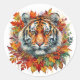 Sticker Rond Autumn Tiger Face Among Fall Leaves