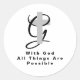 Avec Dieu toutes les choses sont possibles citation religieuse Classic Round Sticker. Design noir et blanc avec croix chrétienne monogrammée. Ajoutez votre propre texte d'inspiration personnalisé en option. Aussi pratique comme scellés d'enveloppe / scellants. Modèle de typographie élégant.