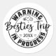 Sticker Rond Avertissement Besties Voyage en cours Noir sur Bla