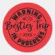 Sticker Rond Avertissement Besties Voyage en cours Noir sur Rou
