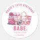 Sticker Rond BABE Pink Pool Party Fille Anniversaire Merci