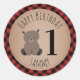 Sticker Rond Baby Bear Cub Lumberjack Plaid Anniversaire