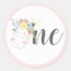 Sticker Rond Baby Giraffe Floral Numéro Un 1er anniversaire fêt