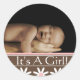 Baby Girl avec votre photo Sticker Classic Round Birth Annonces. Sticker photo pour bébé nouveau-né