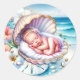 Sticker Rond Baby Girl in a Seashell Baby shower