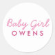 Sticker Rond Baby Girl Nom Baby shower Sticker-Rose Blanc