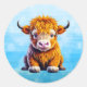 Sticker Rond Baby Highland Cow Adorable Ai Art