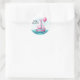 Un autocollant blanc avec voilier rose à rayures blanches et roses sur les voiles, en mer sur un océan bleu doux. Un gros ballon rose est attaché au voilier, conférant un nouveau thème pour bébé. Le message de baby shower peut être modifié selon vos besoins.