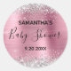 Sticker Rond Baby shower à huile rose Parties scintillant argen