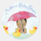 Un thème baby shower est composé d'un bébé afro-américain mignon avec un parapluie rouge gai. Le bébé est assis au milieu d'un troupeau de canards en caoutchouc jaunes, dans un parfum de coeurs pastel et de pluies douces. Disponible dans un thème rose ou bleu ou neutre, avec une adorable collection de décorations de Baby showers, de jeux de baby shower et de faveurs de baby shower pour une fête de bébé d'accueil original et fantaisiste.