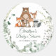 Sticker Rond Baby Shower Animaux de la Forêt Verdure