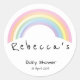 Cet autocollant de Baby shower a un joli arc-en-ciel pastel de couleur pastel. Il a un look doux avec les pastels mais reste neutre pour les hommes et les femmes. Vous pouvez le personnaliser avec le nom et la date de la fête.