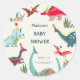 Sticker Rond Baby shower bleu dinosaure