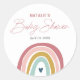 L'autocollant Rainbow Boho Pink Blue Baby shower présente un adorable duo d'arc-en-ciel dans les tons rose, blush, moutarde, aqua et marine, ainsi que la calligraphie moderne.
